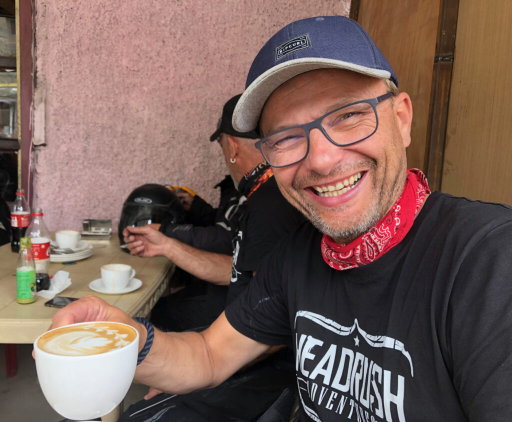 Seit 2004 ist er mehrmals im Jahr in Indien und als ehrenamtlicher Vorstand im Hilfsprojekt Delhi House engagiert (wo alle Gewinne von Headrush hinfließen) und hat die indische Kultur und Leben in Indien als absolute Horizonterweiterung erlebt. „Incredible India“ ist der Slogan der offiziellen indischen Tourismuskampagne – und das passt für ihn in jeder Hinsicht: „Unglaubliches, unvorstellbares, unfassbares Indien“. Wenn Dirk nicht auf einer Royal Enfield sitzt, ist er in Deutschland als Projektentwickler unterwegs.